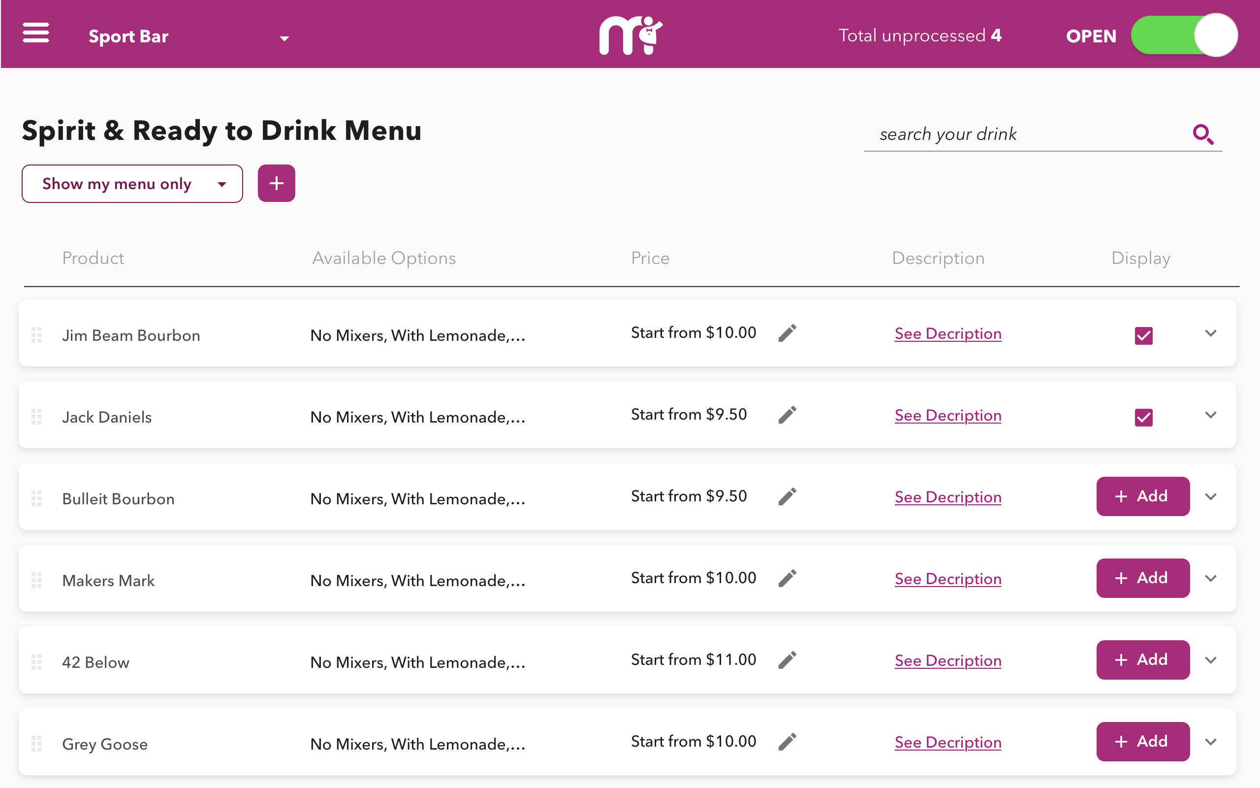 Control your venue's menu and pricing while making use of Mimu as your promotional and marketing platform to advertise food and drink specials.